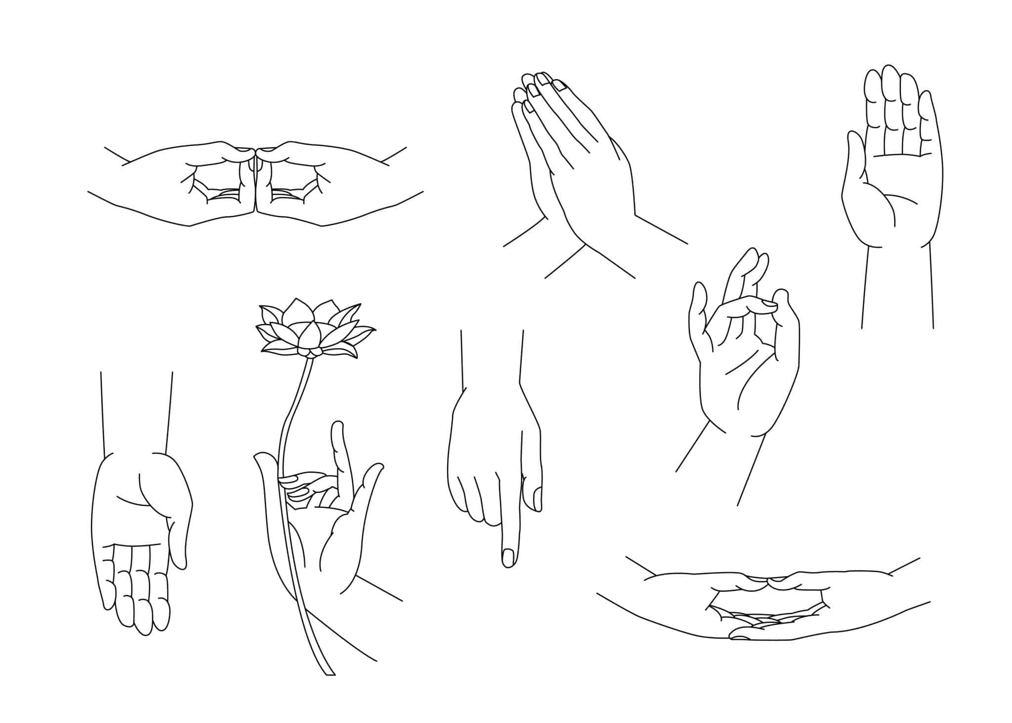 手を合わせる。仏様が人間に合掌することは稀で、主に人間側や、修行中の弟子などが行います。