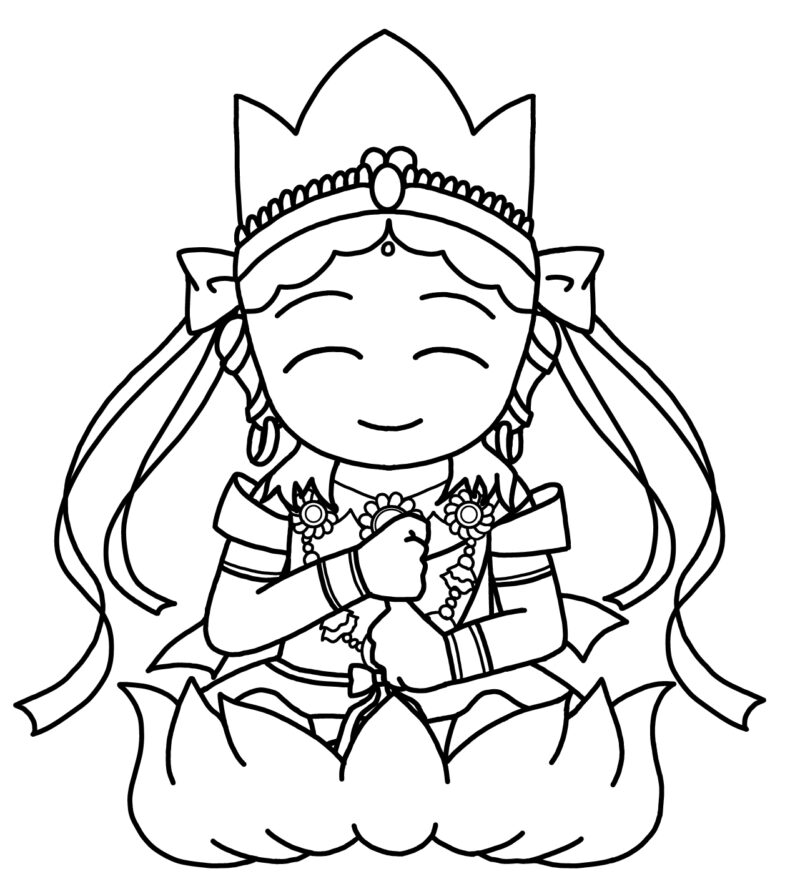 悟りを求めて修行中ですが、あえて現世に留まり、私たち人間を助けてくれる優しい仏様。お釈迦様が出家する前の「王子時代」の姿がモデルなので、きらびやかです。