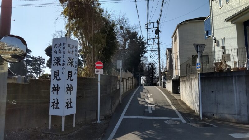 住宅街を進むと延喜式内相模十三社「深見神社」の案内板が見えてきました。