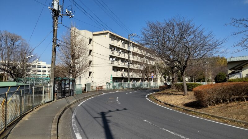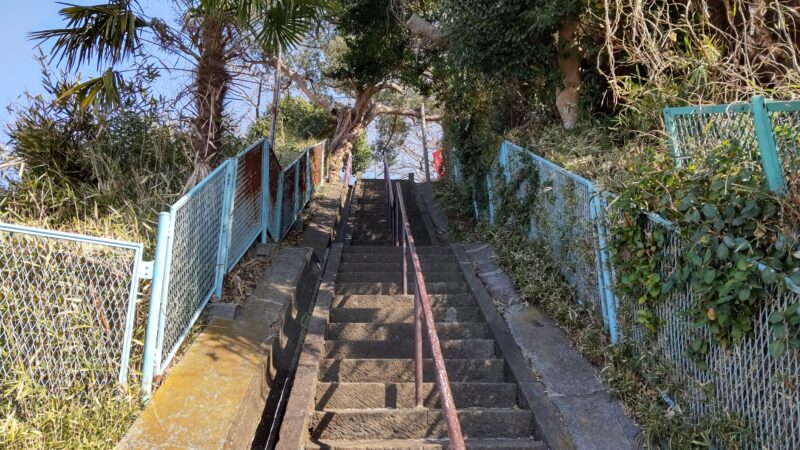 趣のある街道が続きますが、昔はこのあたり商家が立ち並び栄えていたようです。東海道新幹線の高架をくぐった先、右手には大きな団地が拡がります。左手の階段の先は「本興寺」の境内となります。