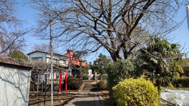 続いて、「いちょう団地」の中をのんびり歩いていくと、ベトナム料理のお店が点在し古き良き昭和の雰囲気も漂っています。上飯田西公園を過ぎると左手が「飯田神社」で、先ほどの「左馬社」とも関係が深く、境川沿いの歴史と信仰の中心地にある神社です。