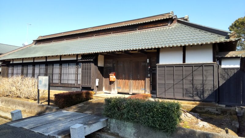 田園風景の先左手に大きな長屋門、「美濃口家長屋門」です。江戸時代に上飯田村の名主を代々務めた旧家です。当時の農村の支配層の暮らしぶりを伝えています。美濃口春鴻は江戸中期の相模を代表する俳人でもありました。長老として大磯にある鴫立庵の後見もしています。