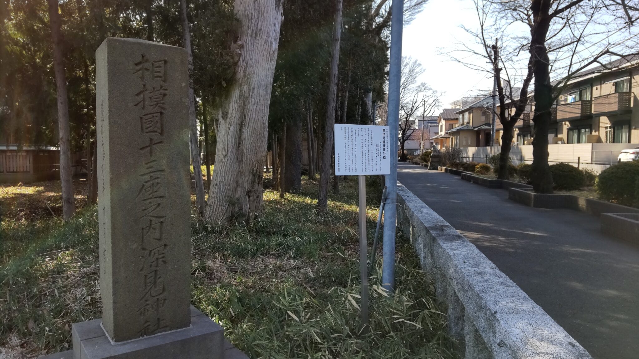 住宅街を進むと延喜式内相模十三社「深見神社」の案内板が見えてきました。