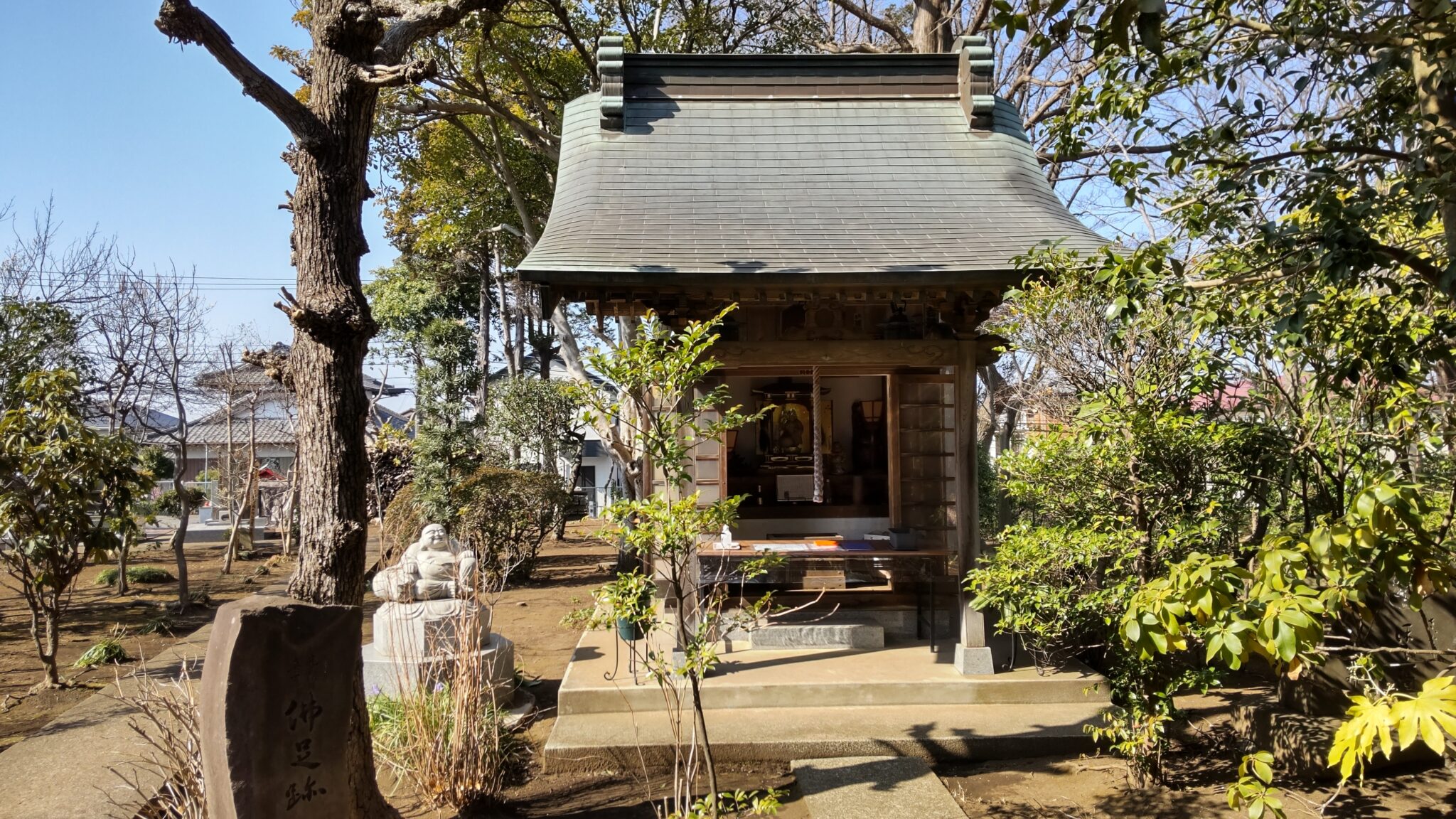 住宅街を進むと大きな銀杏の木が見えてきます。「無量寺」は、静かな環境の中にあり、地域の人々に長く信仰されてきた浄土宗のお寺。本尊は阿弥陀如来像。江戸時代の地誌『新編相模風土記稿』にも記載されている古い寺院です。