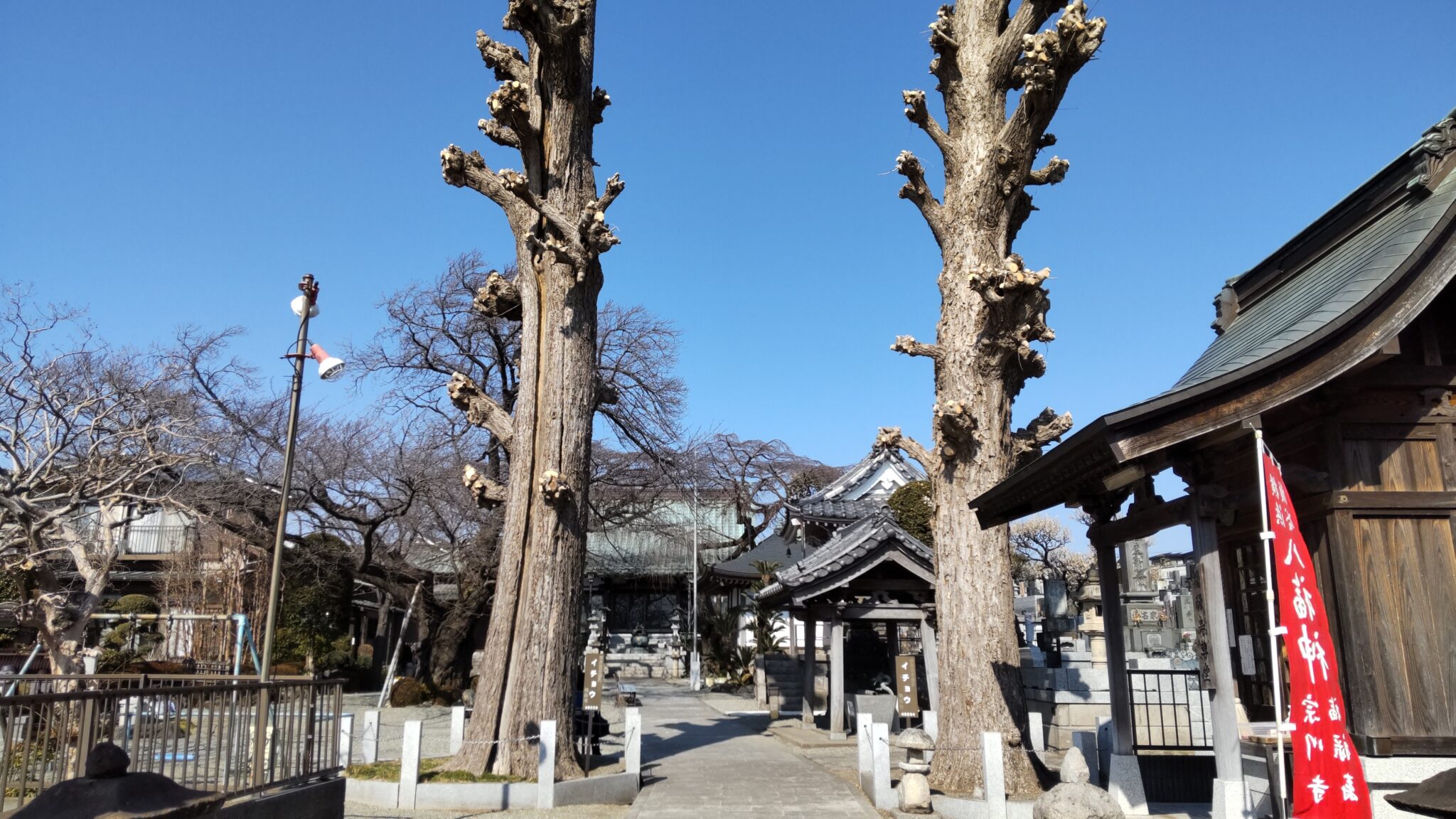 瀬谷八福神の一つ、福禄寿も祀られています。境内の山門脇には、夫婦銀杏と呼ばれる大きなイチョウの木があります。古くから安産や育児の信仰を集めてきたとされています。「横浜の銘木」にも指定されており、秋の紅葉はさぞかし見事なことでしょうね。