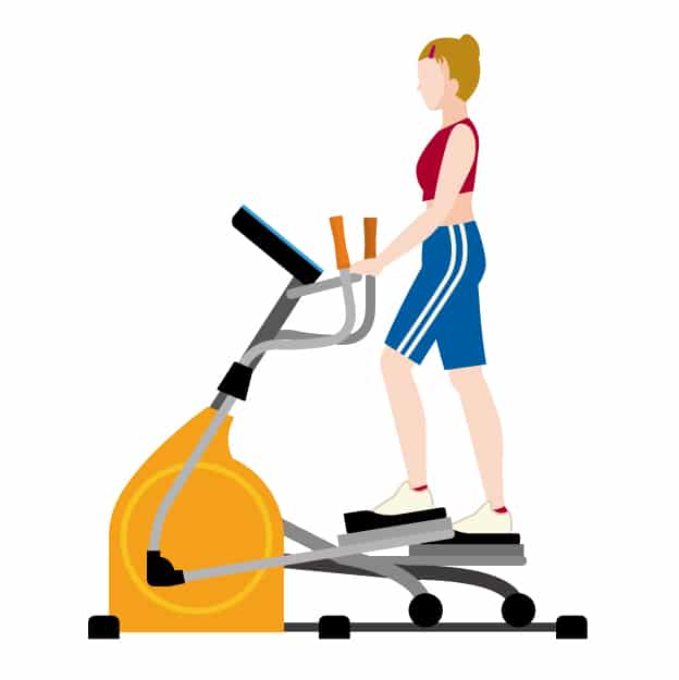 足腰への衝撃が少ないため、膝が不安な方におすすめ。腕のハンドルも使って全身を動かすように意識しましょう。