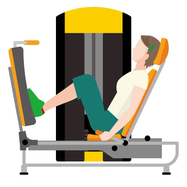シートの角度やスタート位置を調整し、膝とつま先を同じ方向に向けます。重すぎない負荷で、ゆっくりと丁寧に行いましょう。