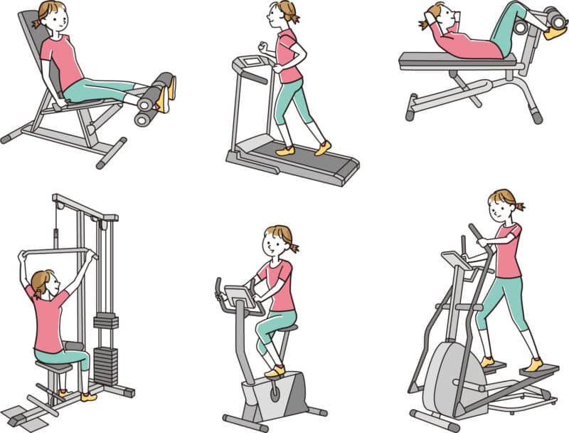 私がトライしている初心者向けの代表的なマシン、有酸素系を3つ、筋トレ系を4つあげてみました。ほかにも多くの種類があるので自分のレベルに合わせて挑戦してみるといいと思います。