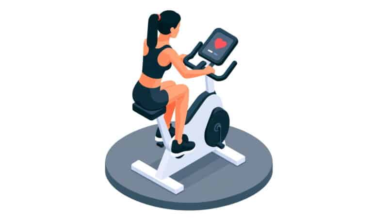 サドル位置を調整し、膝が伸びきらない程度に設定。ペダルを無理なく漕げる負荷で、20分以上続けると脂肪燃焼効果が高まります。
