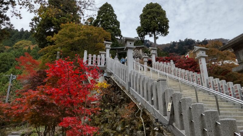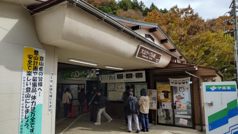 大山ケーブ駅に到着、平日ですが外国人観光客の方も多く賑わっています。今日は乗り場ではなく、駅の左手に進み登山口に向かいます。山奥に続く長い階段からのスタートとなります。