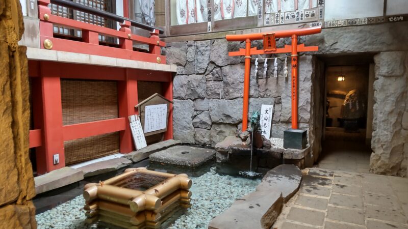 奥へ進むと、さざれ石、大黒天と恵比寿天、ボケ封じの双代道祖神、半地下センターにある本殿では燈明を奉納することができました。