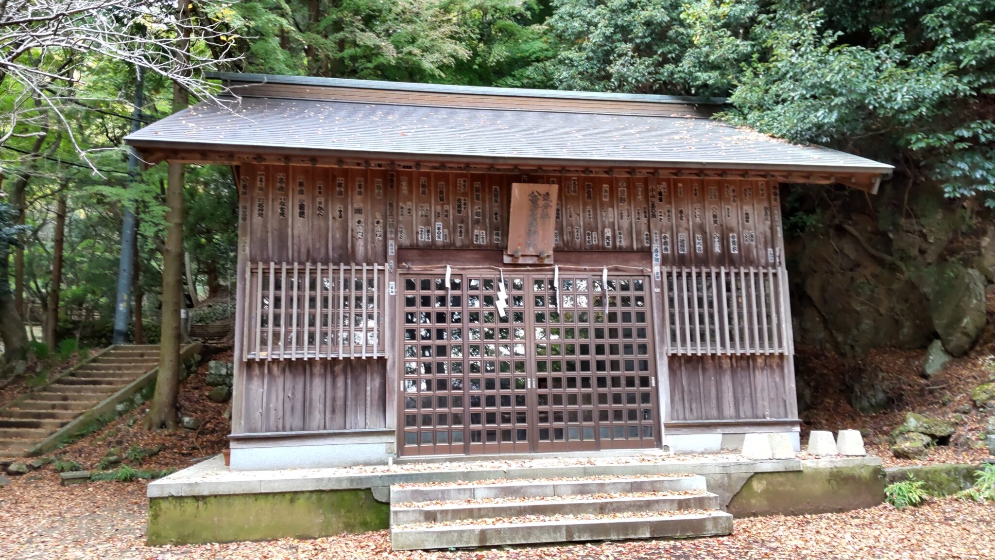 最初の石段踊り場に「男坂」右、「女坂」直進の案内板が登場、大山寺20分、下社40分の案内です。ここが坂の分岐点、先には山を背にした追分社「八意思兼神社」(やつごころおもいがね)が見えてきました、まさしくここが追分。