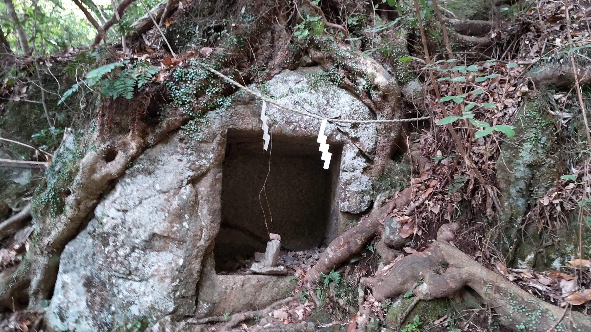 慎重に梯子を下りると、古い石碑と共に大切に守られた湧水が祀られていました。蛇口をひねると当たり前のように出てくる水道水、それを当たり前のように使っている私たち。全国伝わる弘法大師ゆかりの水のお話、水は命を支える貴重なもの。改めて水の大切さと向き合い、感謝を忘れないようにしなくてはいけませんね。