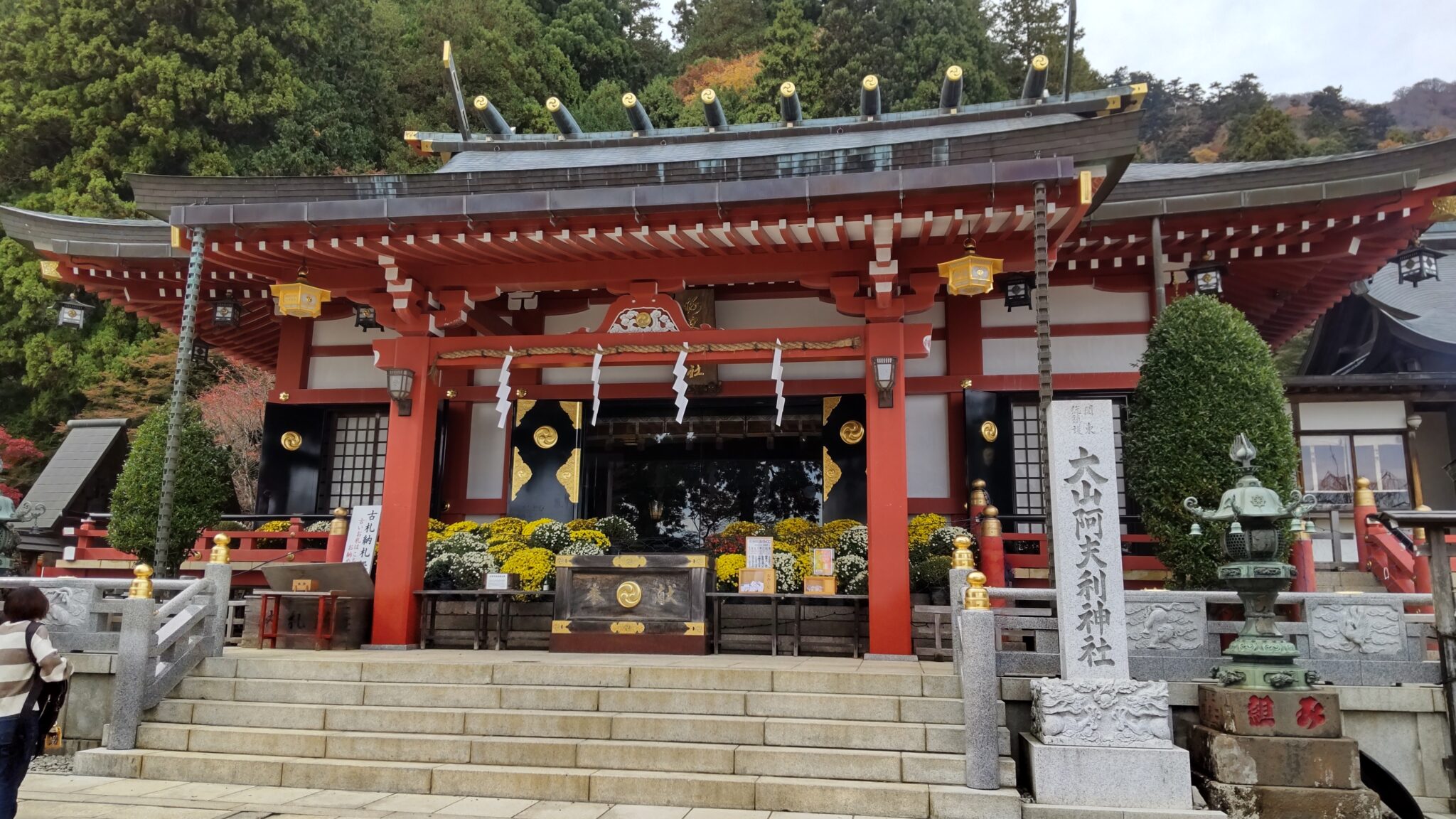 大山寺は、奈良の東大寺を開いた良弁僧正が755年に開山したのに始まるそうです。途中七不思議で出会った弘法大師は三世として入られたそうです。ご本尊の大山不動像は苦難を分け隔てなく助けてくださるありがたい仏様、しっかり日頃の感謝を伝えお参りしていきましょう。