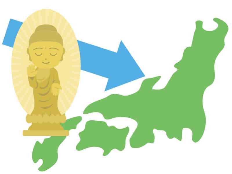 6世紀頃、インド・中国を経て百済からの公式な伝来により「仏教(仏様)」が日本に本格的に広がります。538年・ご・さん・ぱい(ご参拝)、百済の聖明王から仏像や経典を献上された仏教公伝です。