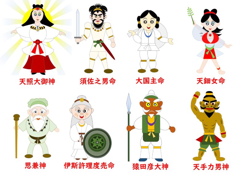 • 七福神: インド(仏教)、中国(道教)、日本(神道)の神様がチームを組んでいます。